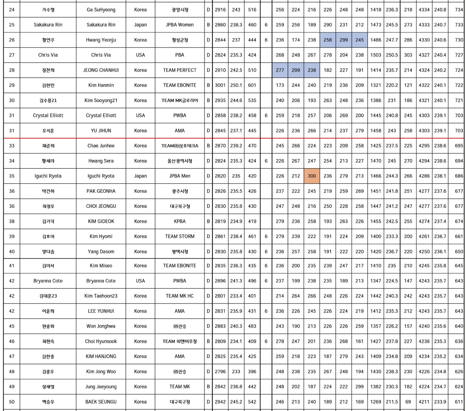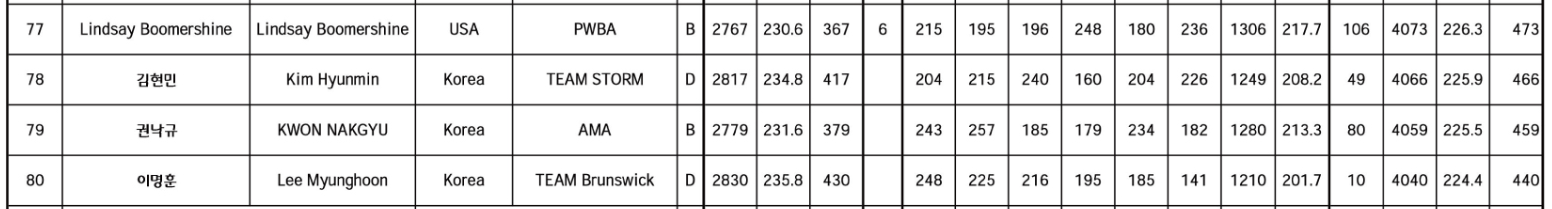볼토피아 오픈 국제볼링 선수권대회 준결승 경기는 80명이 6게임을 진행 합니다. 단, 본선의 12게임의 점수와 준결승의 6게임을 합산하여 최종 등수가 확정 됩니다.